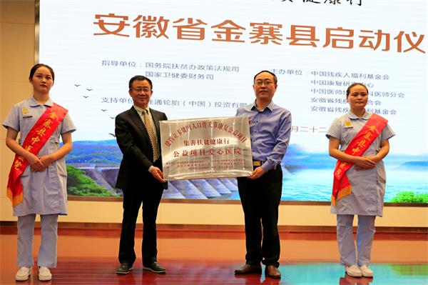 为贯彻落实习近平总书记和党中央关于扶贫工作的指示精神,中国残疾人福利基金会(简称“中基会”)积极倡导并出资开展了“集善扶贫健康行”项目,在经过多方商讨和各级领导关怀下,最终选定了金寨县作为该项目的实施基地,并于9月22日上午,在金寨县中医医院举行了启动仪式,中国残疾人福利基金会领导、安徽省残疾人福利基金会理事长秦德文、县委常委、县长汪冬及项目专家组成员出席启动仪式,副县长蔡黎丽主持。